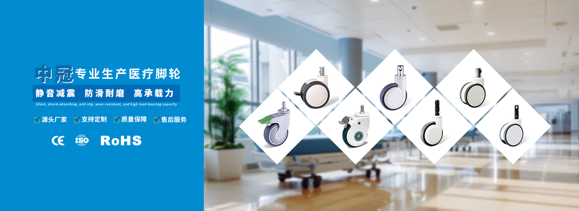 無錫市中冠醫(yī)療設備有限公司無錫市中冠醫(yī)療設備有限公司(簡稱中冠腳輪)是中國醫(yī)用腳輪專業(yè)制造商,公司成立于2009年,是一家專注于醫(yī)用腳輪的創(chuàng)新、研發(fā)、制造、銷售和服務為一體的高新技術(shù)企業(yè)。現(xiàn)已形成覆蓋醫(yī)用腳輪市場的多個系列數(shù)百個品種的產(chǎn)品線,已成為中國具有規(guī)模并擁有多項自主知識產(chǎn)權(quán)的醫(yī)用腳輪創(chuàng)新型企業(yè)。
